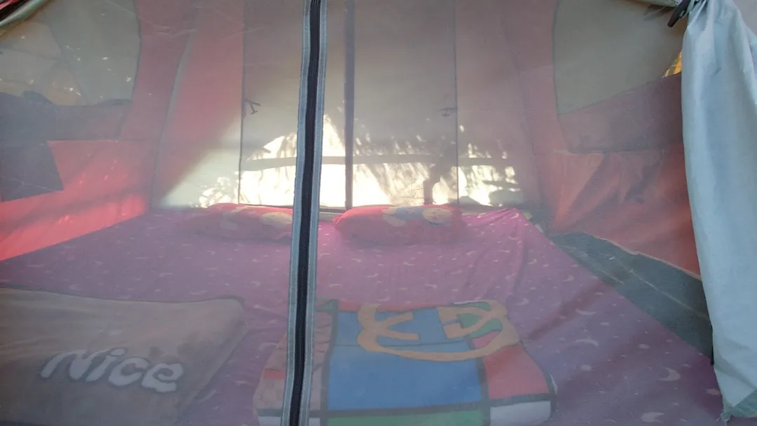 帳篷裡的床墊很厚,睡起來很舒服。但夜深天氣更冷,毯子可能不夠厚,穿襪子、毛衣才勉強抗寒(最好再加一條毯子)。
