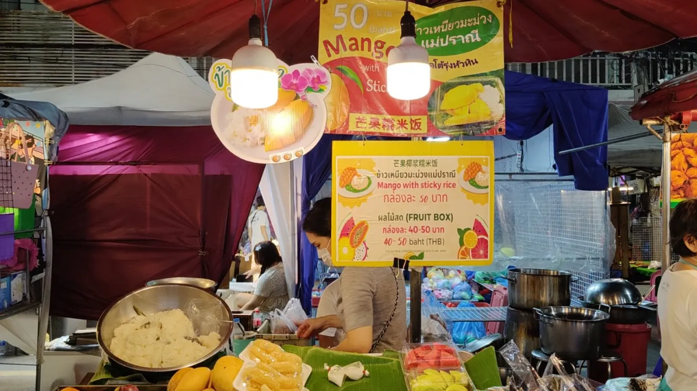華欣的糯米飯特別有名,絕對不輸於甜品,ข้าวเหนียวมะม่วงแม่ปราณี的芒果糯米飯,1盒才只要50銖,味道很棒,值得打包帶回去。