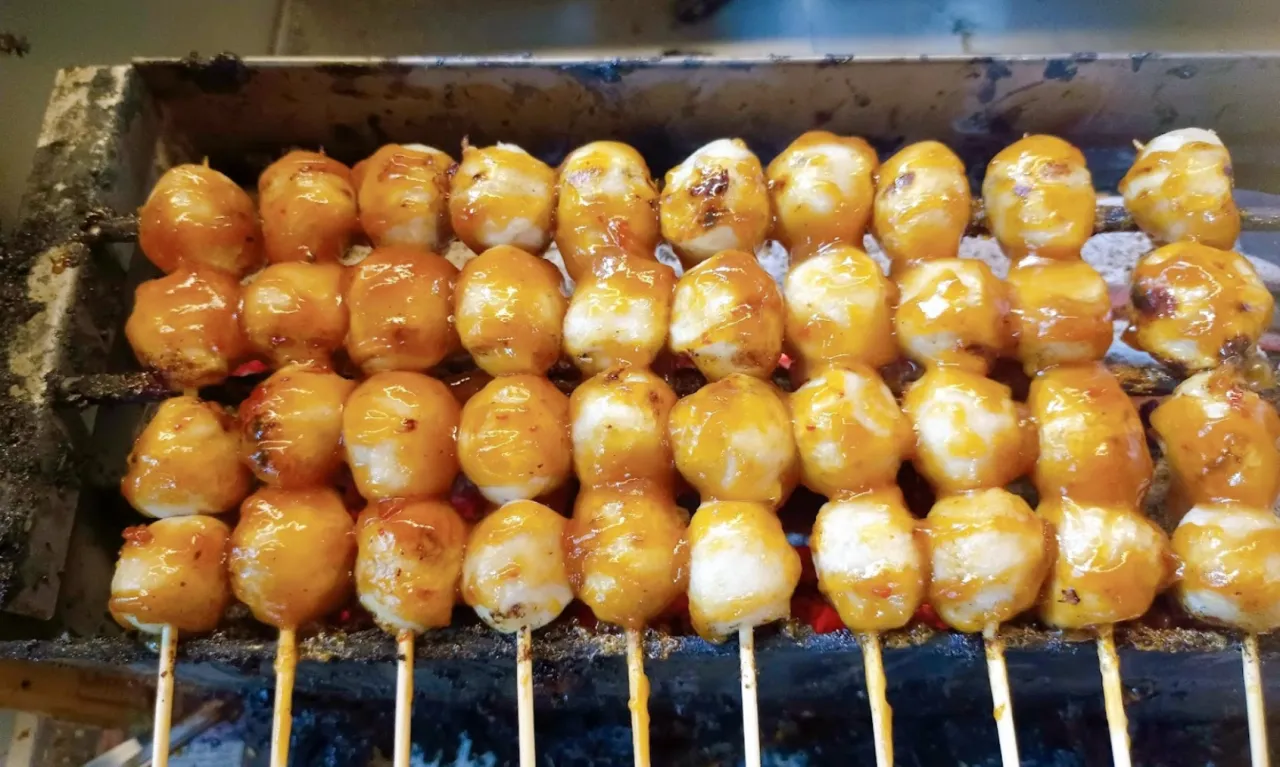 ลูกชิ้นหัวหิน的豬肉丸特別好吃,很純的豬肉沒有添加麵粉,1串12銖,沾醬也特別夠味,忍不住,一下就「喀」掉3串,華欣夜市不能錯過的店。