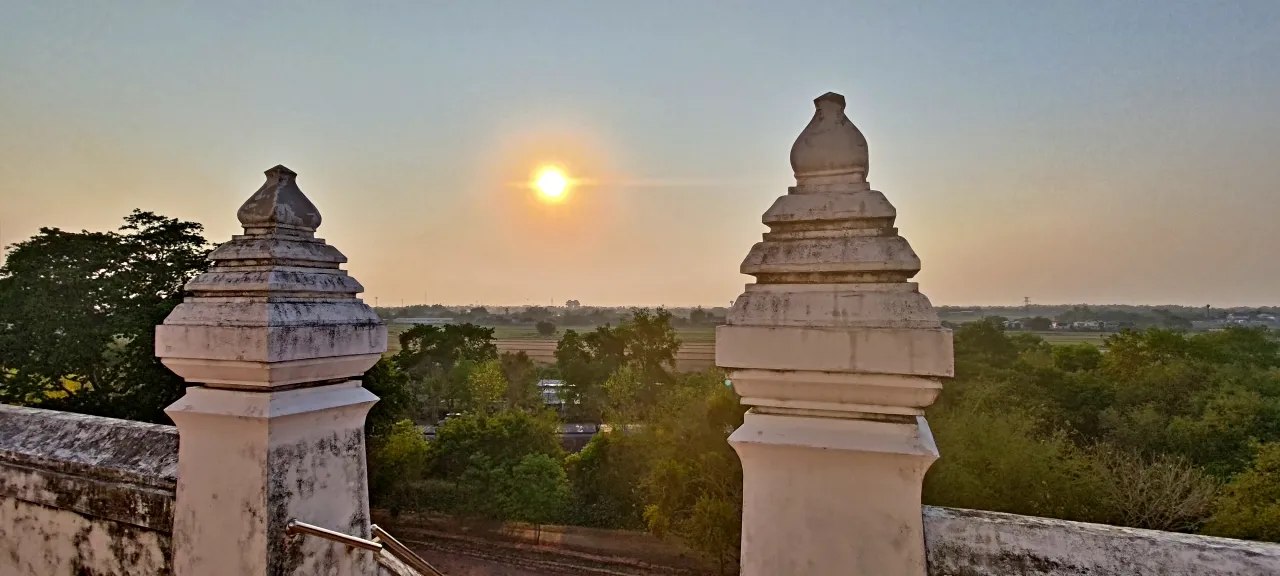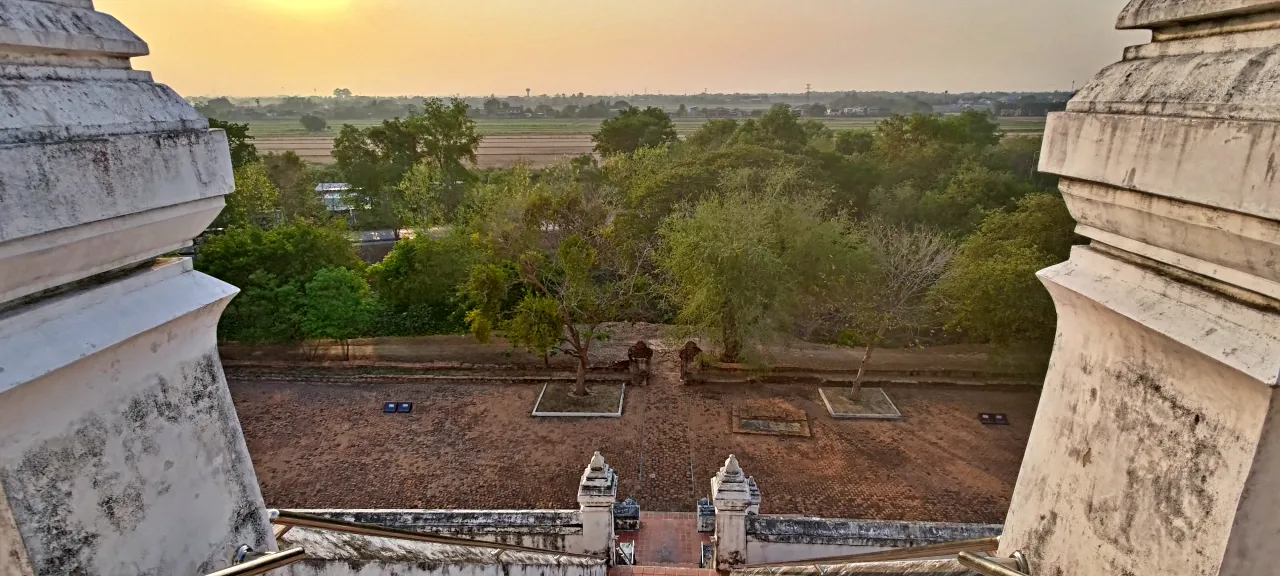 走上佛塔的81級階梯,便能登上高處俯瞰大城的田園風光與古城遺址。