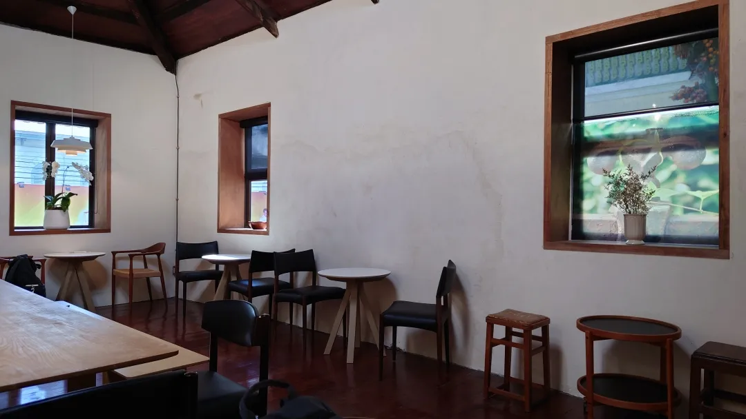 一走進店,就像踏進時光隧道,擁有百年歷史的建築,據說建於拉瑪五世時期,過去曾是牙醫診所,經過精心修復後,保留原始的建築細節與歷史韻味。店內設計以 Modern Vintage 風格為主,搭配溫暖的木質家具、柔和的地球色調與自然採光,每個角落都充滿質感,讓人忍不住拿起相機捕捉美好畫面。