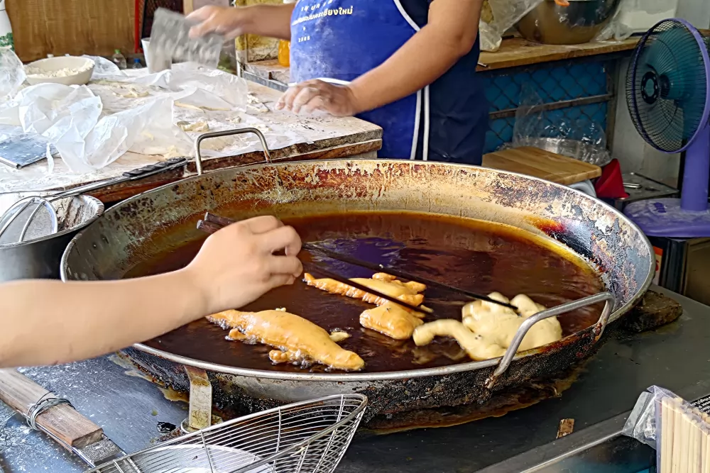這家以創意動物造型油條聞名,不只外型可愛,口感更是酥脆香濃。特別推薦搭配自製的濃郁香甜香蘭葉醬,簡直絕配。此外還提供豆漿與粥品,是清邁人氣早餐選擇。銅板的價格超親民。
