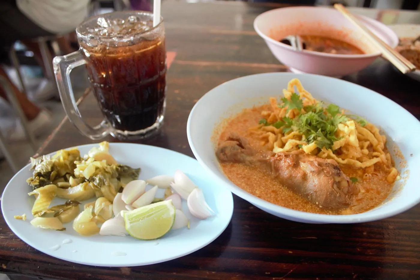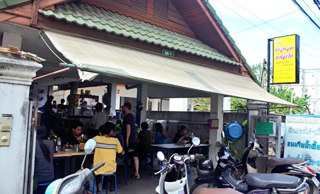 這間擁有超過30年歷史的「考摔」咖哩麵老店,連續4年榮獲米其林指南推薦。店內主打傳統北部口味,有雞肉、豬肉和牛肉可選。湯頭濃郁、香料味十足,搭配酥脆炸麵條與軟Q麵條,絕對是來清邁必試的經典。價格只要55泰銖起,經濟又美味!