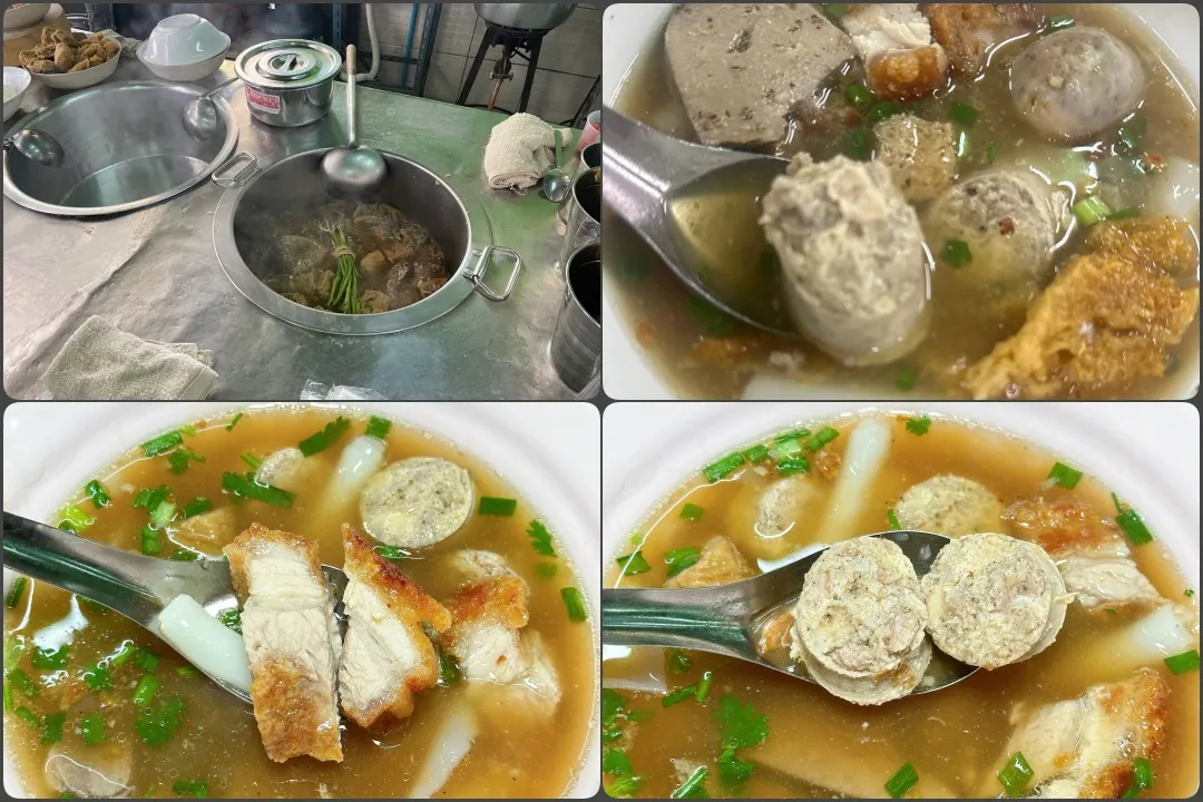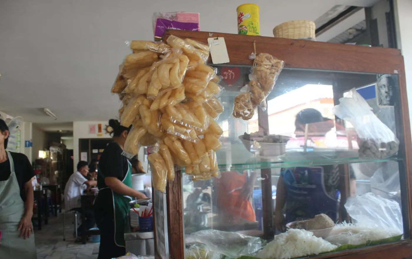 這家豬雜粿汁店代代相傳,成為在地人推薦的必吃美食。這裡的豬雜粿汁以塞滿豬雜的內餡聞名,湯頭濃郁香醇,加上酥脆的烤五花肉與新鮮春捲,風味獨特。價格親民,只需幾十泰銖就能享受一碗「滿滿誠意」的好味道。