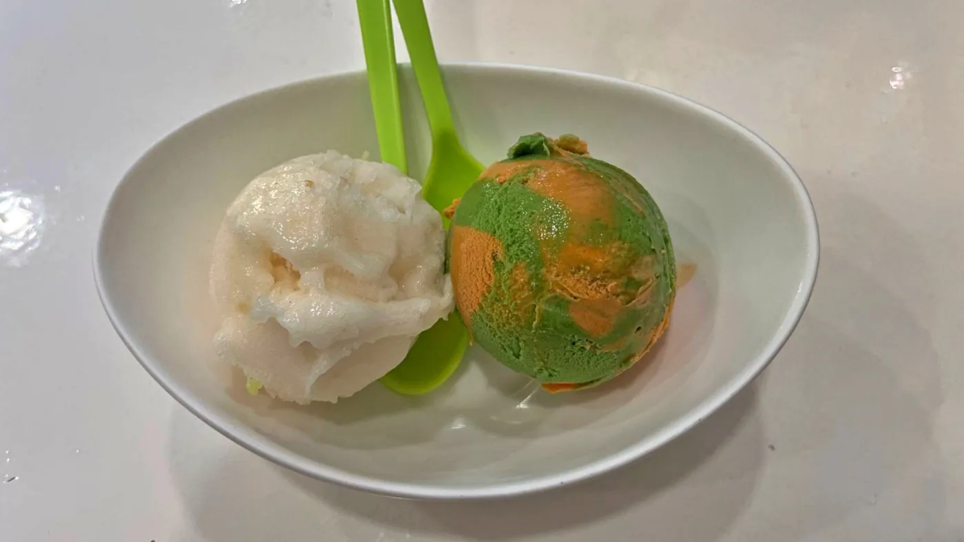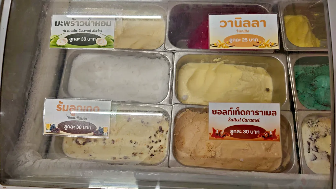 這裡的冰淇淋口感獨特,帶點細密碎冰感,清爽而不膩。除了 招牌新鮮椰奶冰淇淋,還有 泰奶、黑芝麻、椰青、綠茶、咖啡、巧克力 等多種經典與創新口味。