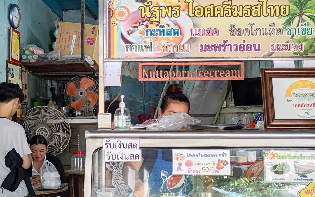 如果你來曼谷老城區,一定要來 Nattaporn Coconut Ice Cream,感受懷舊氛圍與傳統泰式甜點的完美結合。
