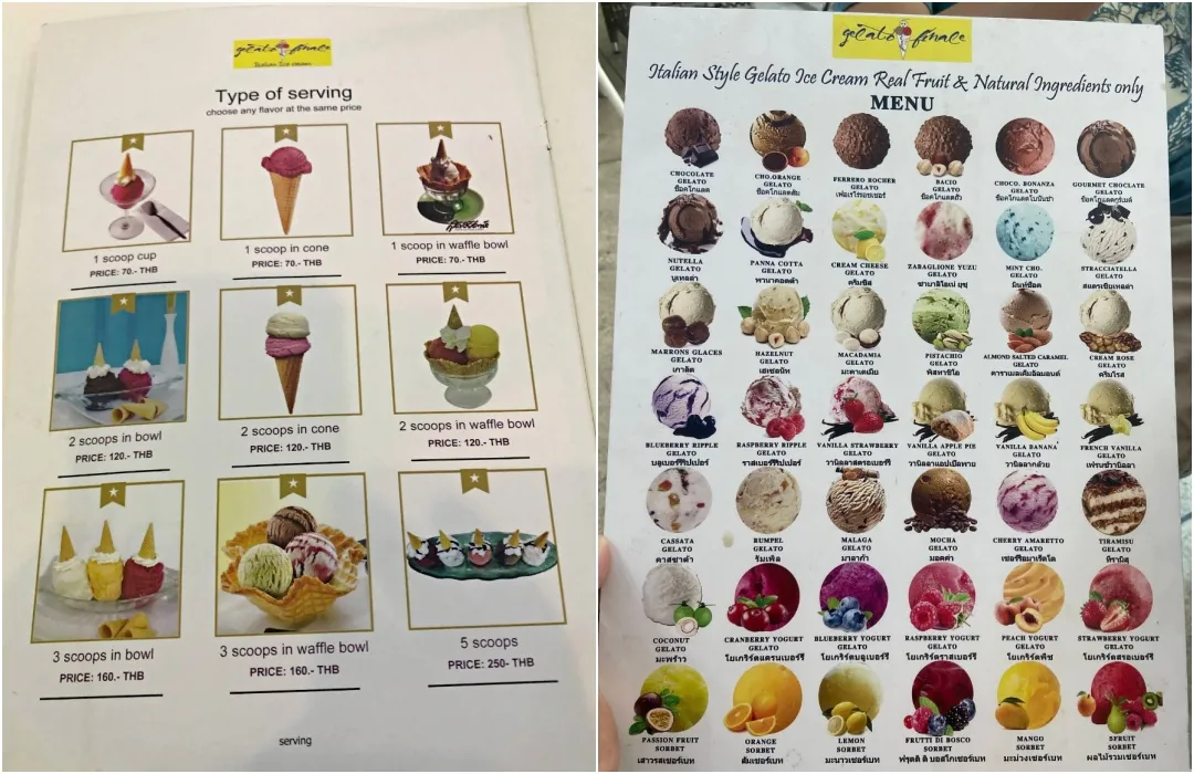 Gelato Finale 擁有超過 60 種口味,每天輪流供應至少 22 種冰淇淋,從經典的 椰子、香蕉 到季節限定的 榴槤、草莓、芒果,每一款都選用新鮮水果製成,口感濃郁、果香撲鼻。尤其是水果口味,不加一滴水,每一口都像在吃真正的鮮果,完全讓人一試成主顧!