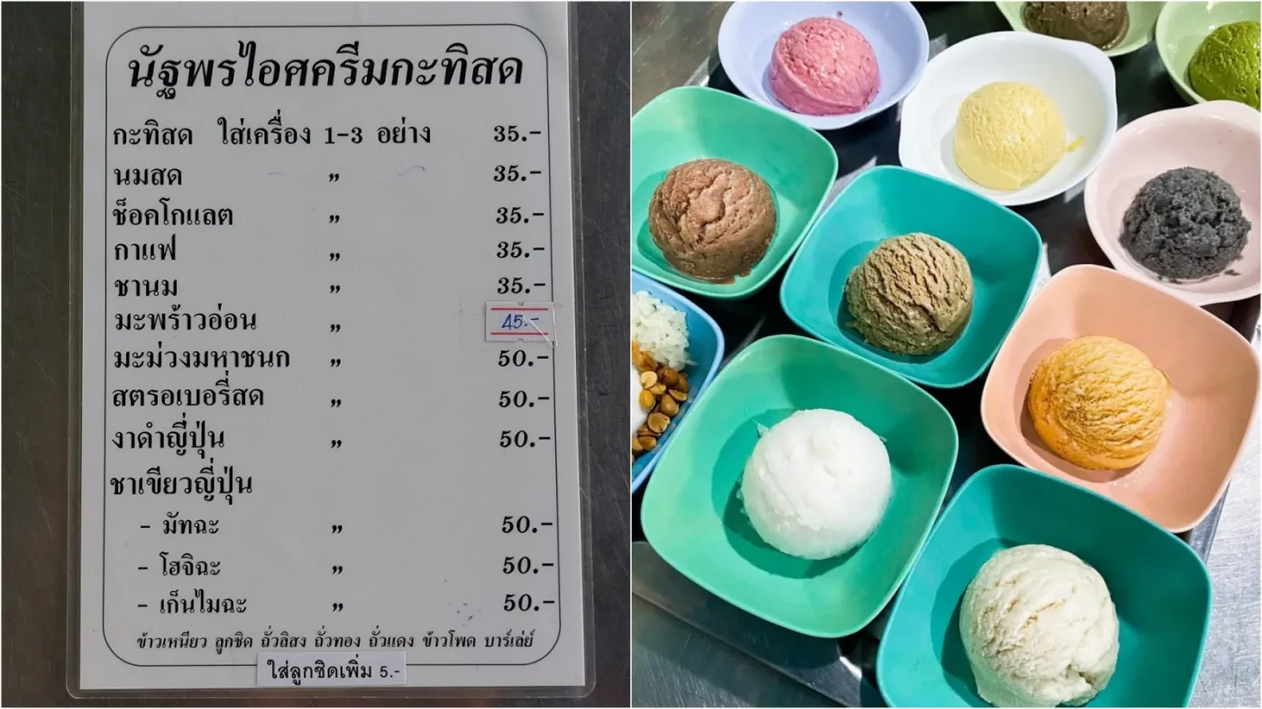 Nattaporn Coconut Ice Cream (นัฐพรไอศครีมกะทิสดแท้)是曼谷老城區隱藏版寶藏,超過 70 年歷史,以傳統古法與天然食材冰淇淋,保留最純正的泰式風味。店面懷舊樸實,牆上掛滿了 泛黃的老照片與媒體報導,能感受到濃濃的時光痕跡與在地情懷。