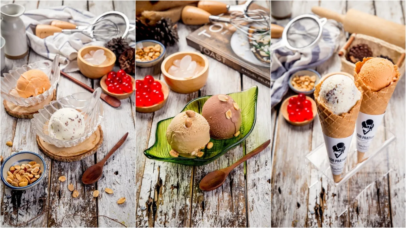 擁有超過 40 年歷史的 Aor Prathin Ice Cream (อ ประทิน ไอศครีม),是曼谷老字號的自製傳統冰淇淋店。以濃郁懷舊風味與實在用料 擄獲無數在地人的心。店內提供超過 20 種口味,包括 泰式奶茶、綠茶、巧克力、餅乾奶油、薄荷巧克力片、藍莓優格、柚子橙 等,選擇超級豐富。
