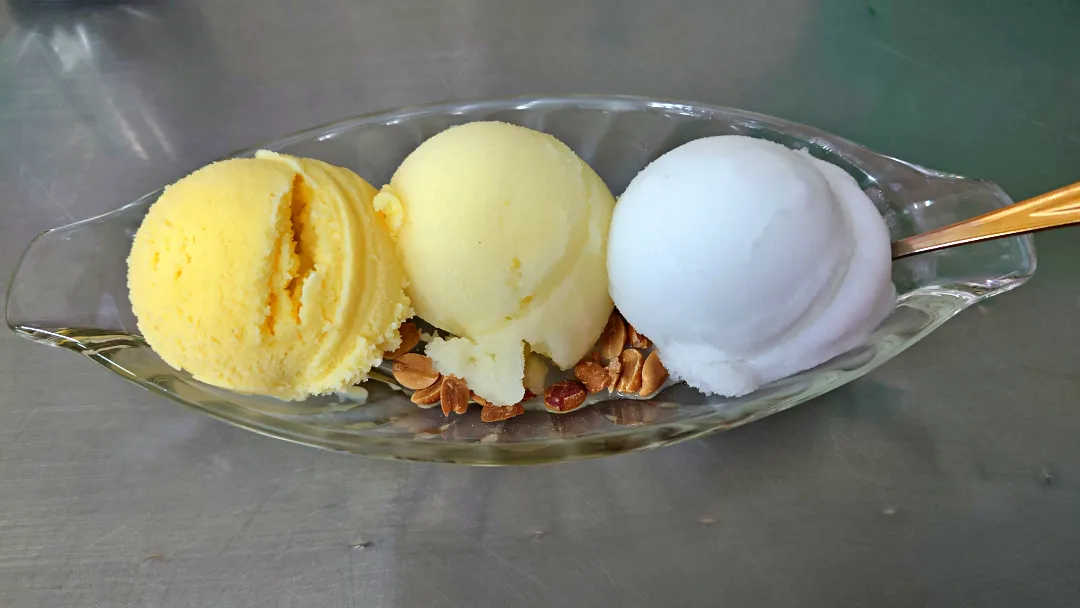 來這裡 絕對不能錯過的招牌 是新鮮椰奶冰淇淋,濃濃椰香與滑順口感在嘴裡綻放,清爽不膩,一試成主顧!搭配店家的 經典傳統配料,像是 糯米、烤花生、蜜漬芋頭、蜜餞果凍、椰果 等,更讓每一口冰淇淋充滿層次感與在地風味。