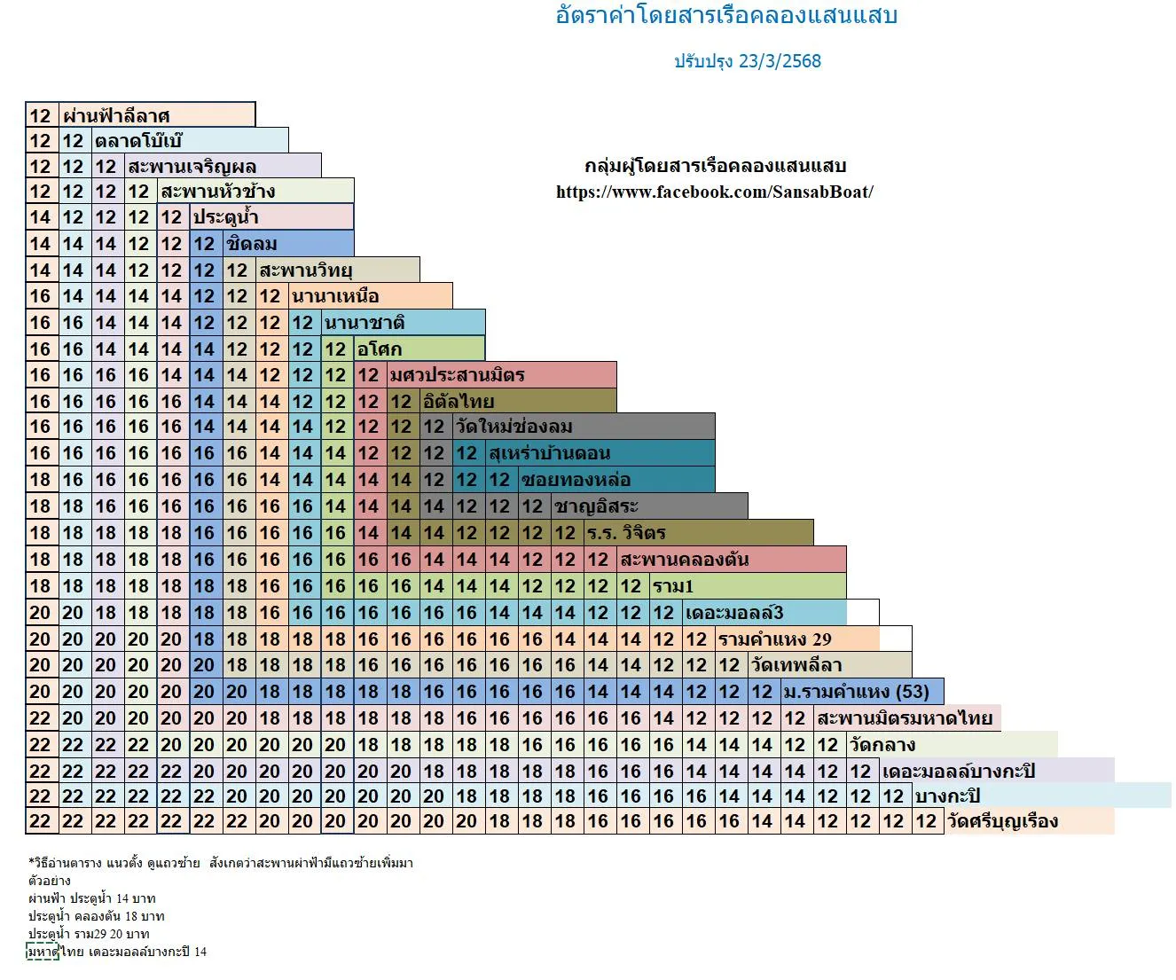 每天早上5點半到晚上8點半營運(週末只到晚上7點),票價從12泰銖起跳到20泰銖,依照距離收費。