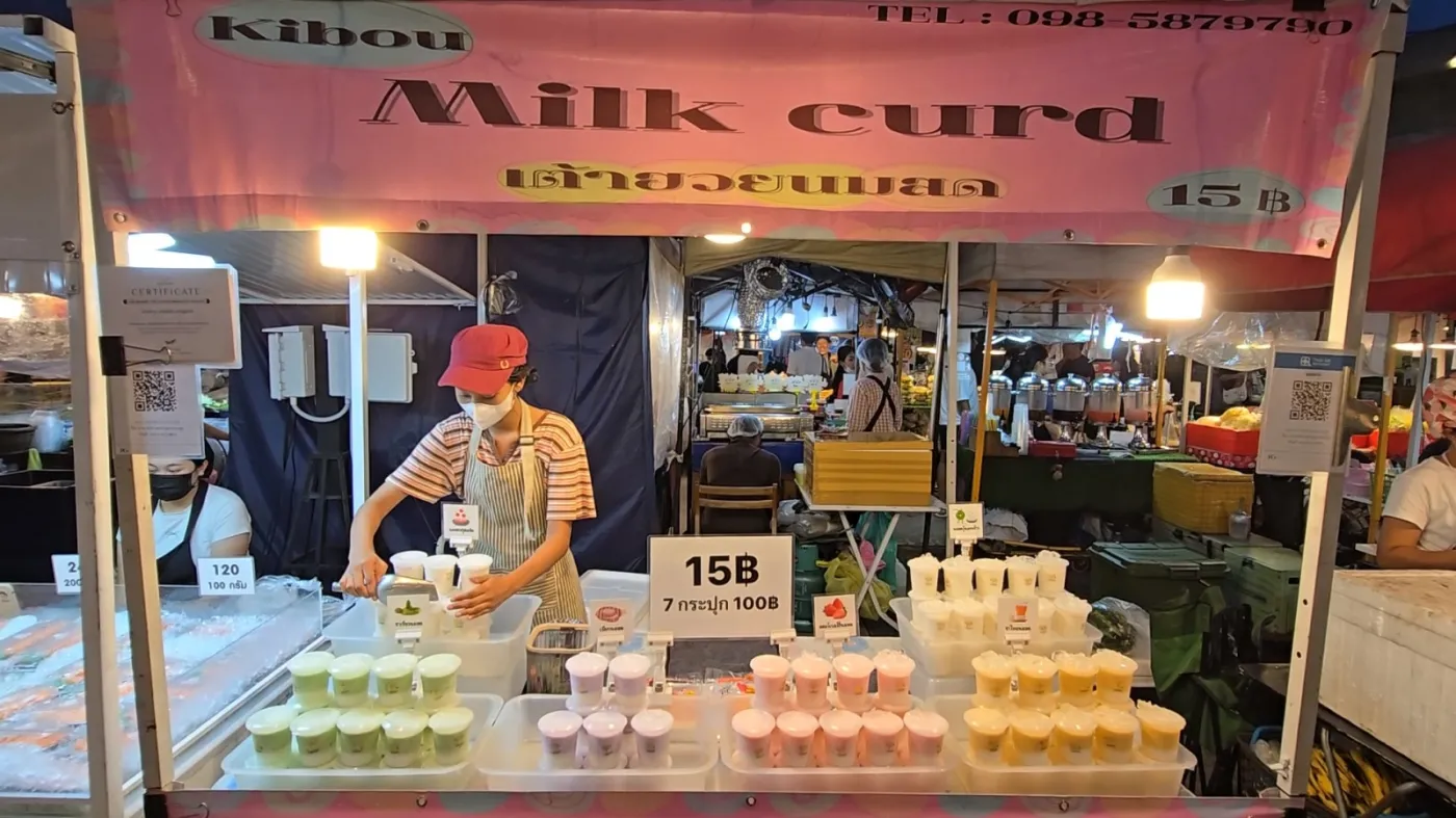 凍奶(Milk Curd):加上草莓、泰茶、椰子、芋頭、綠茶等口味的冰凍奶,1個15銖,7個100銖,不是很甜,幫助消化。