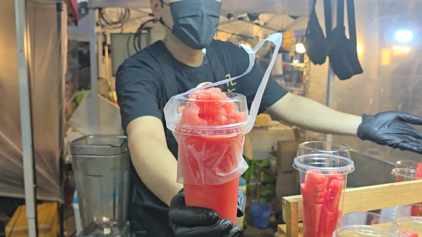 西瓜冰沙:這家專賣西瓜冰沙,西瓜不僅無籽夠甜,打成冰沙,超消暑的,1杯只要20銖,超值!