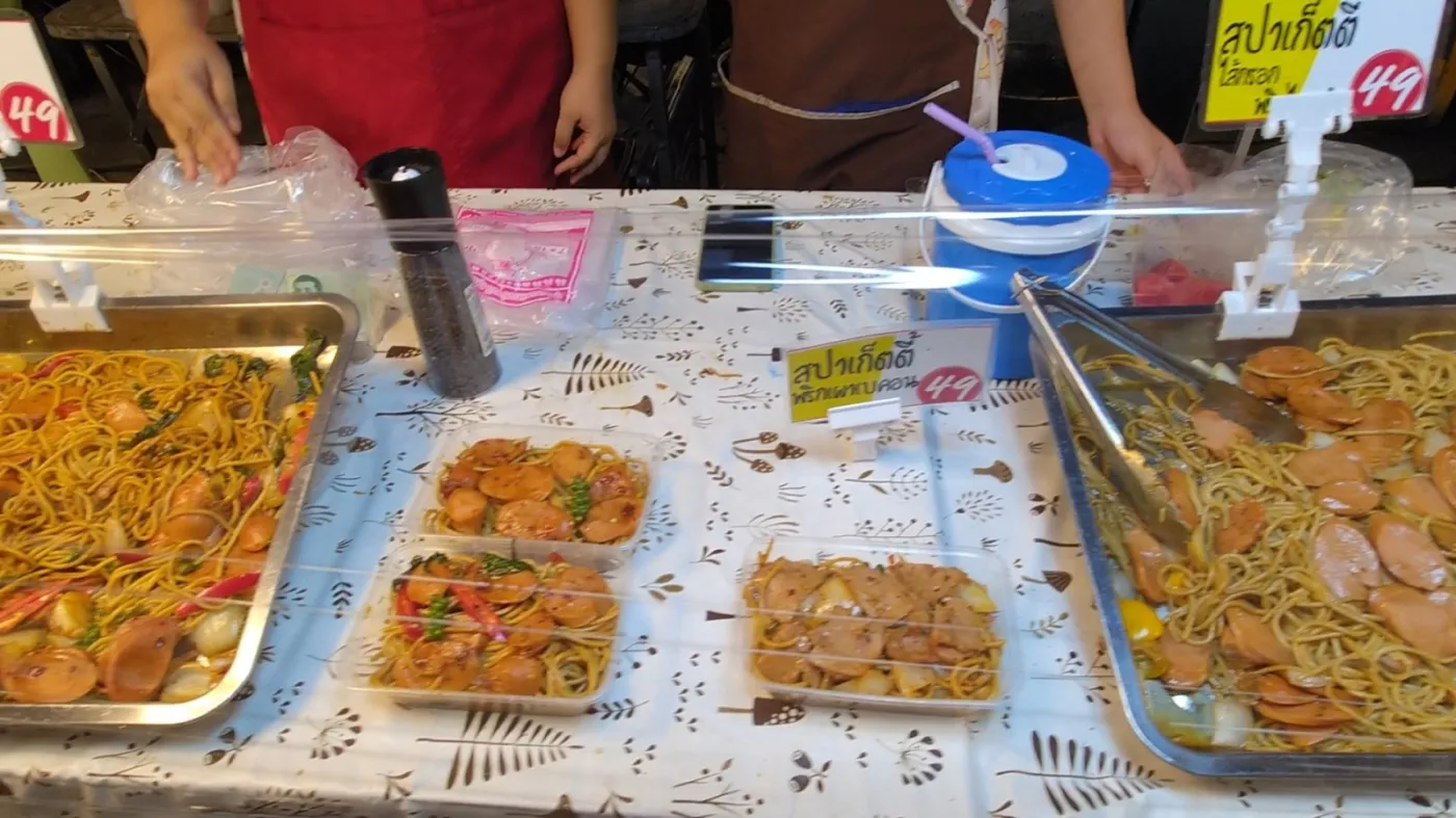 義大利麵:這裡賣的不只是傳統的義大利麵,更有獨特的冬蔭功口味,加了起司的義大利麵中,摻雜酸辣的味道,食慾大增!1盒60銖。