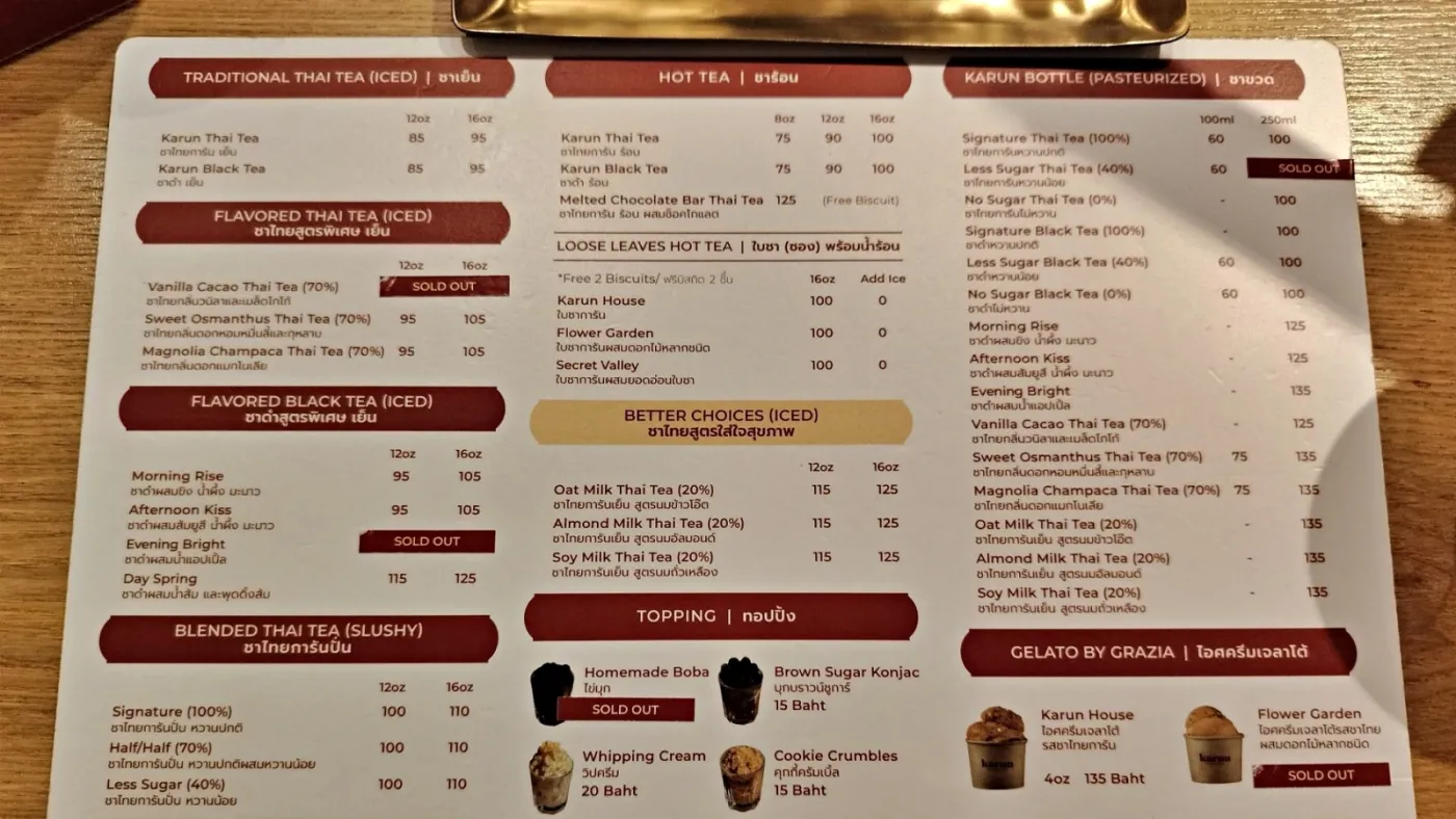 Karun Thai Tea, 泰國著名的泰式奶茶店之一。自 1998 年以對喝茶的熱愛和熱情而發明的原始配方。經過很長一段時間,保證這款泰茶將具有茶典型的強度和香氣,讓泰茶的愛好者絕對不會失望。