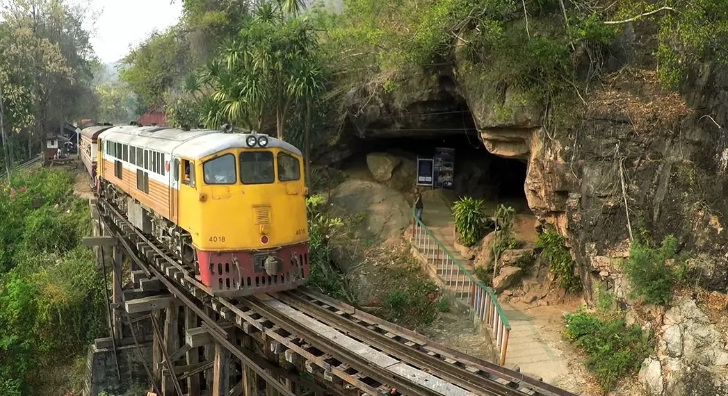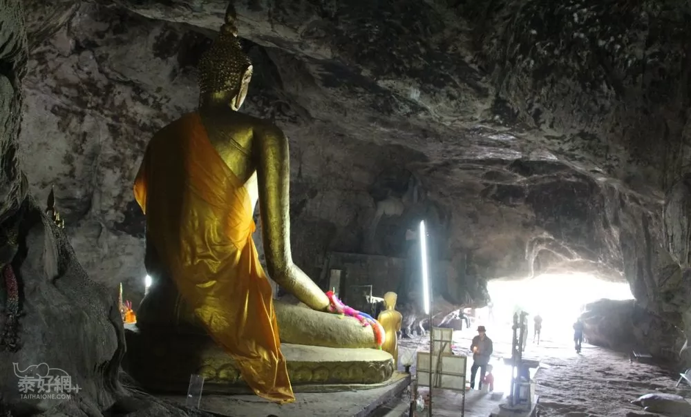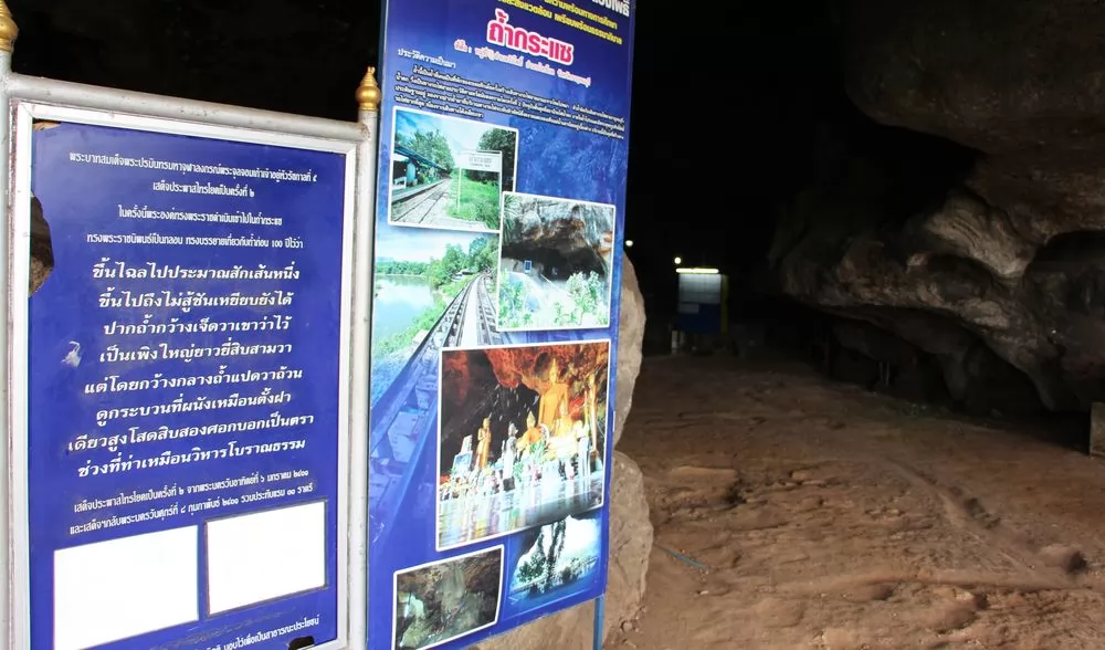 鐵路旁就是Tham Krasae,Tham在泰文即是山洞,二次大戰時期,日軍奴役各國戰俘建築鐵路,部分戰俘居住在這個山洞,死了很多人,後來各國宗教來這裡超度亡魂。Tham Krasae洞內安放了一尊佛像,可順路入內參觀。