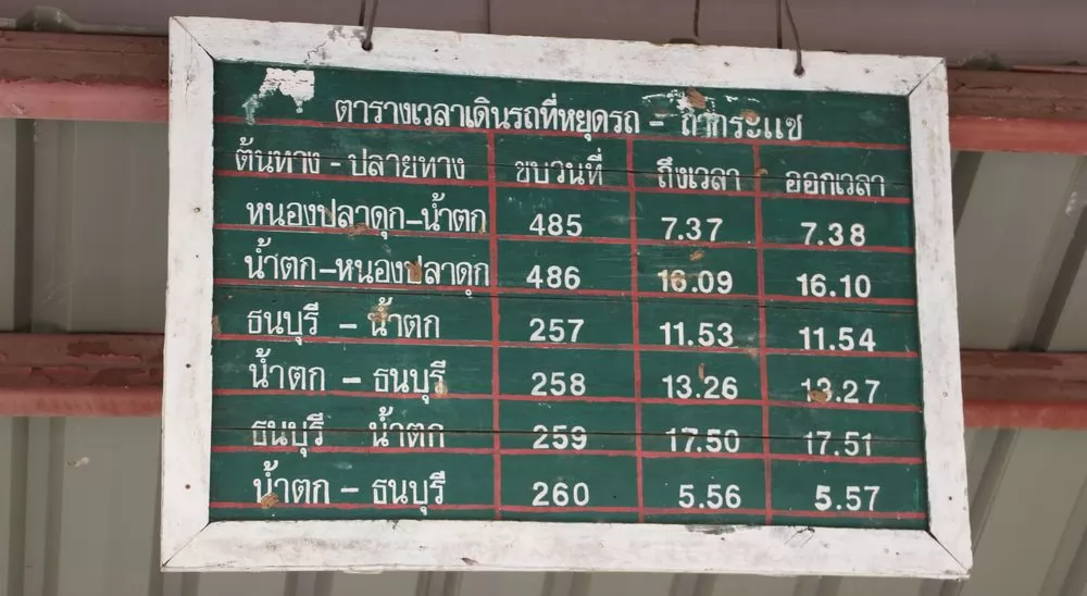 從「桂河大橋」站可以乘坐火車來到Tham Krasae Railway Station站,一日6班(假日多一班SRT的一日遊列車)。