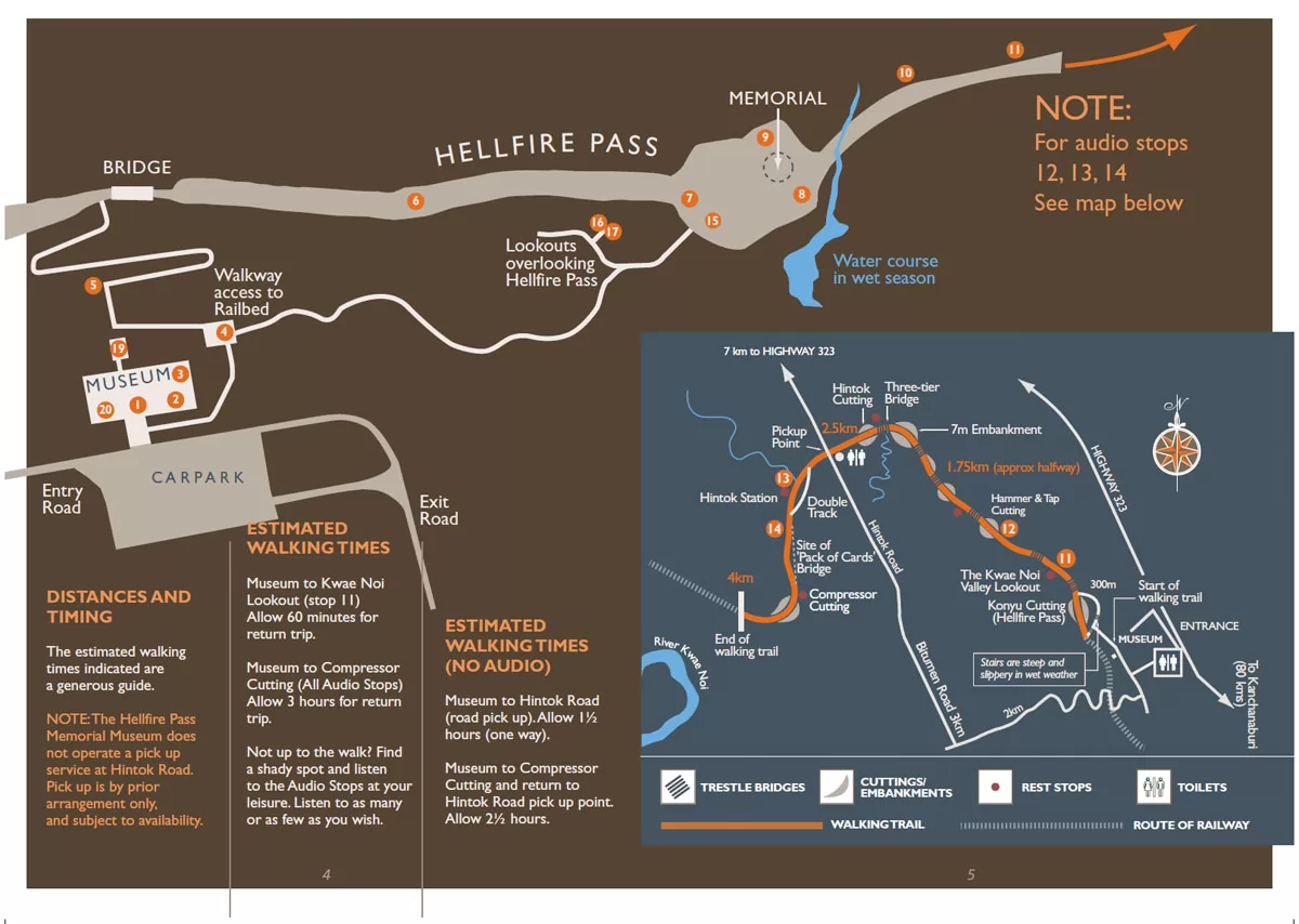 Hellfire Pass入口有博物館,澳洲及泰國合資興建,展示死亡鐵路的背景資料、以及建造鐵路時工具、戰俘用的物品等,如想了解更多當時建造鐵路的情況,可入內參觀,不收門票。很多歐美遊客前來參觀,緬懷這一段歷史。