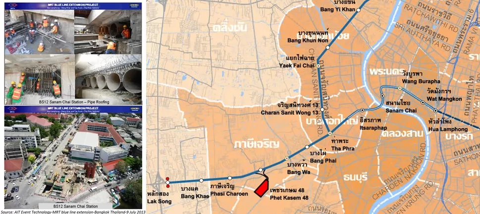 地鐵MRT深藍色線只到Hua Lamphong站,之後的延伸路段,包含沙南猜站還在施工中,目前仍無法通車,整段預計至少要到2019年才能完工。