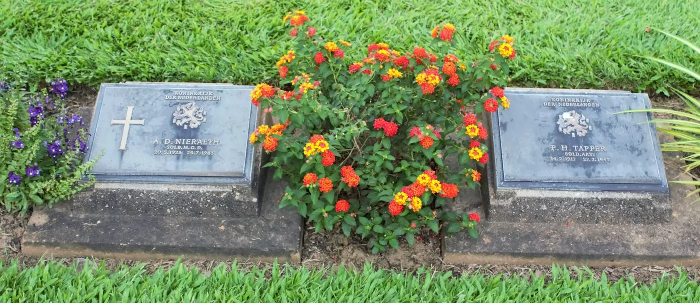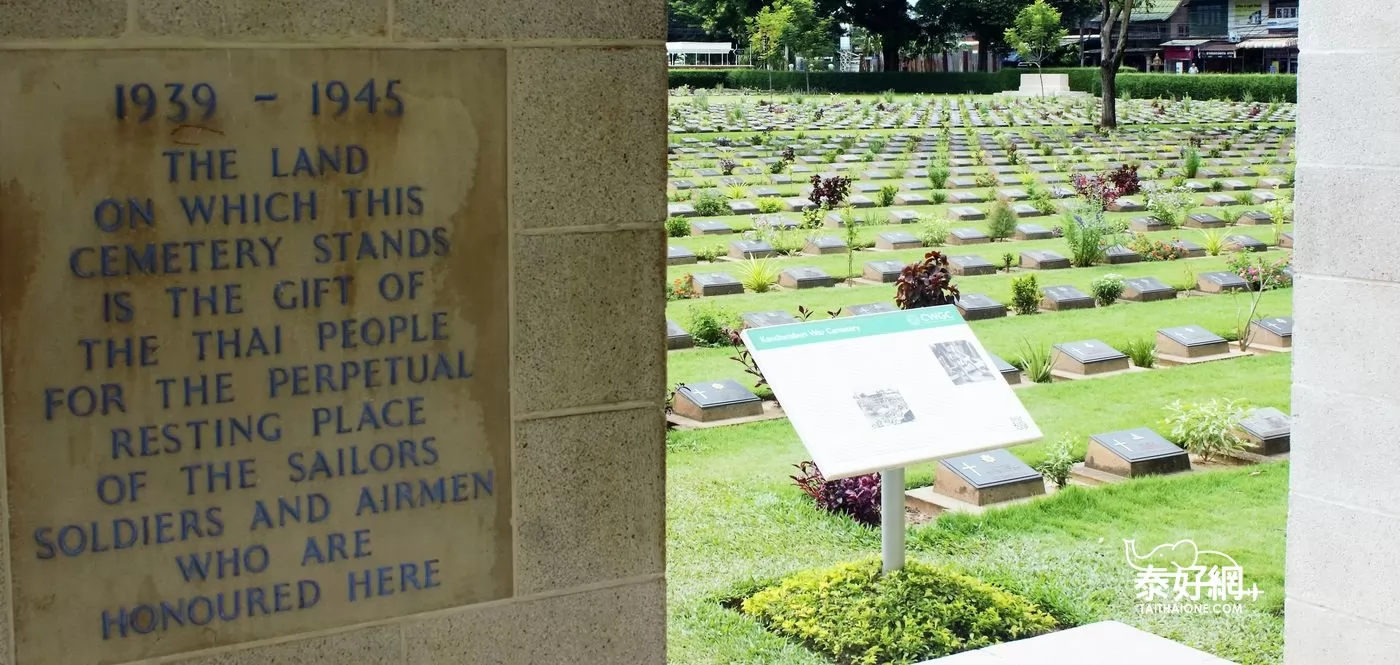 第二次世界大戰後,與日軍結盟的泰國政府賠償兩處土地,給當年建造死亡鐵路時犧牲的盟軍戰俘,分別修建兩座墓園,Kanchanaburi War Cemetery和Chungkai War Cemetery,讓這些歷經苦難的靈魂永遠在這裡安息!