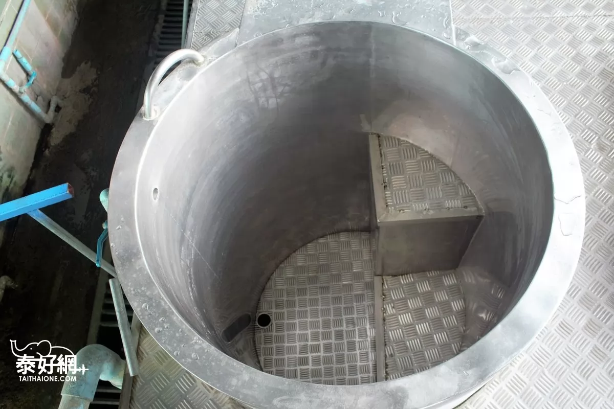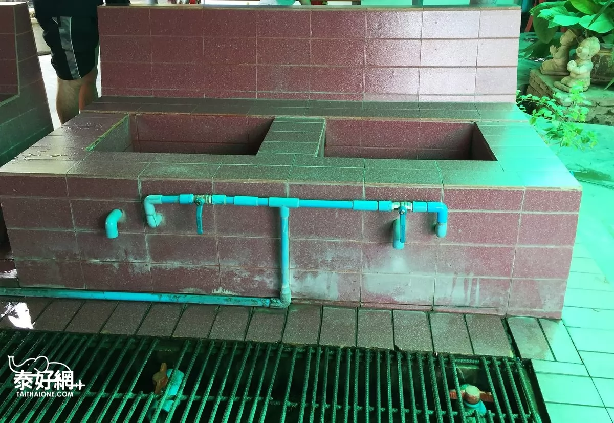 沐浴區,分浴缸和沐桶兩種,鋁鐵製的沐桶可以容納1個人,分為3小層,可以將頭部以下泡在裡面。這裡有泰文告示,提醒使用者每次泡湯不能超過20分鐘,最好的方法是分3次、每次5分鐘,泡超過時間反會傷身。