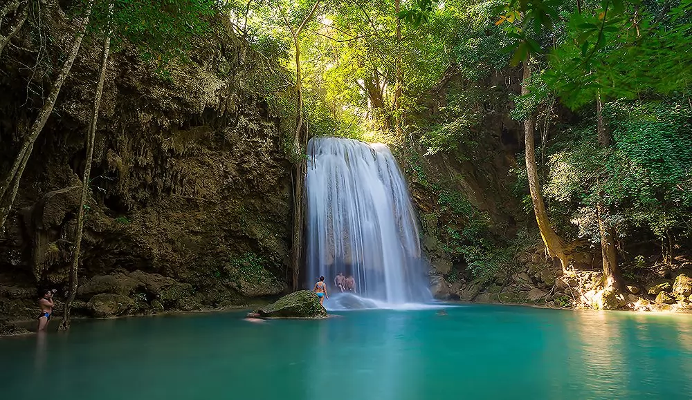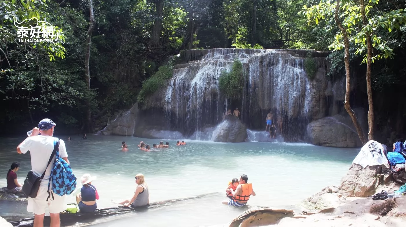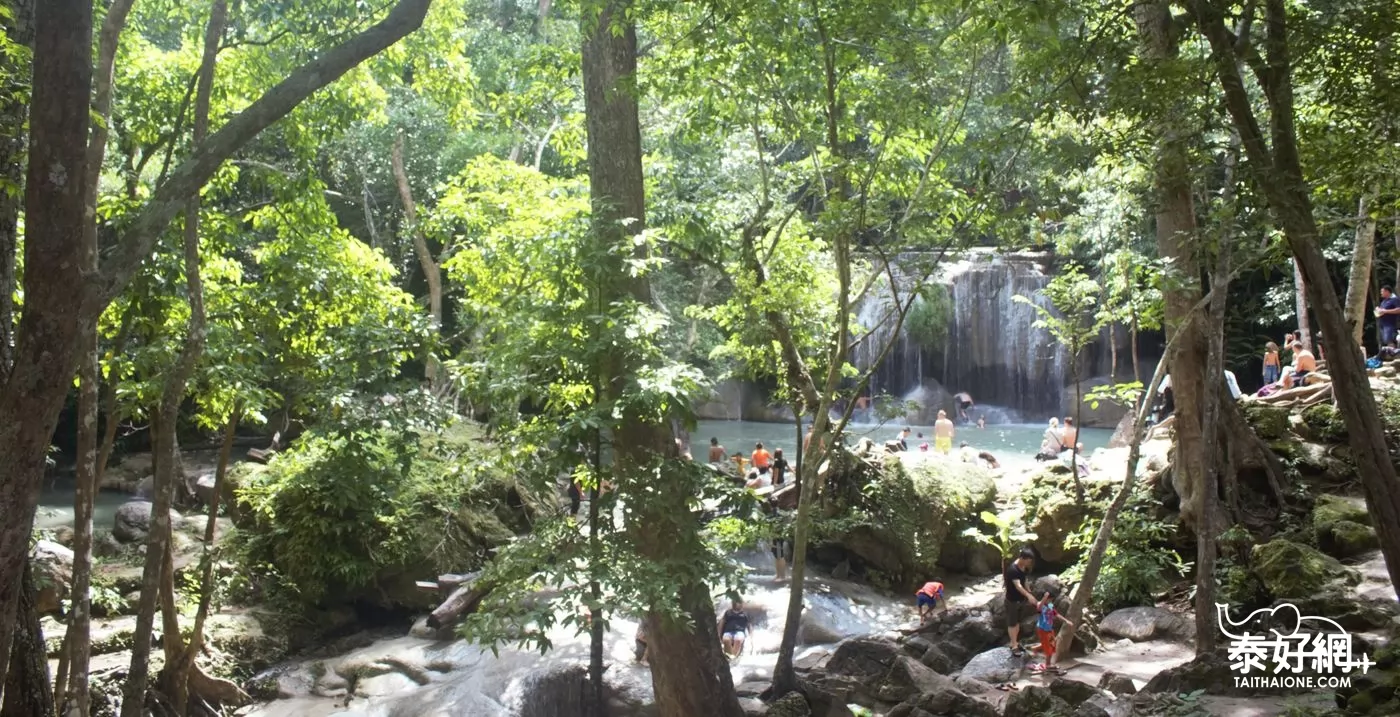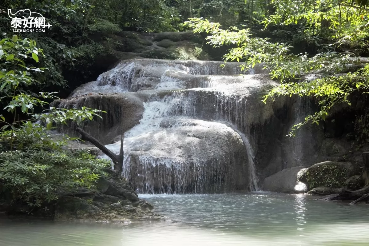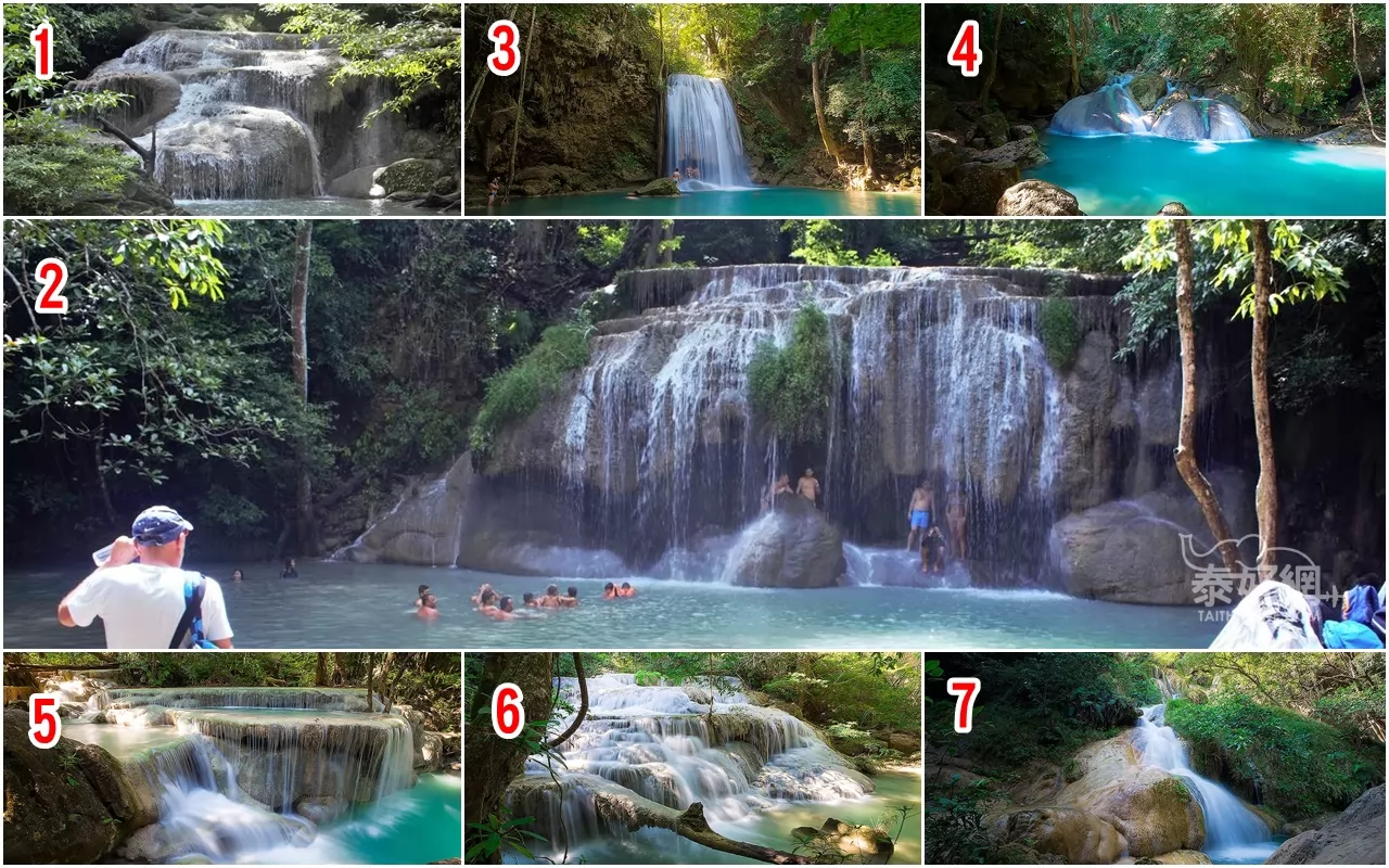 Erawan瀑布(น้ำตกเอราวัณ),隱藏在北碧(Kanchanaburi)森林當中的Erawan National Park裡,7層翠綠瀑布與水潭,有如人間仙境!享譽全泰國的國家公園瀑布。