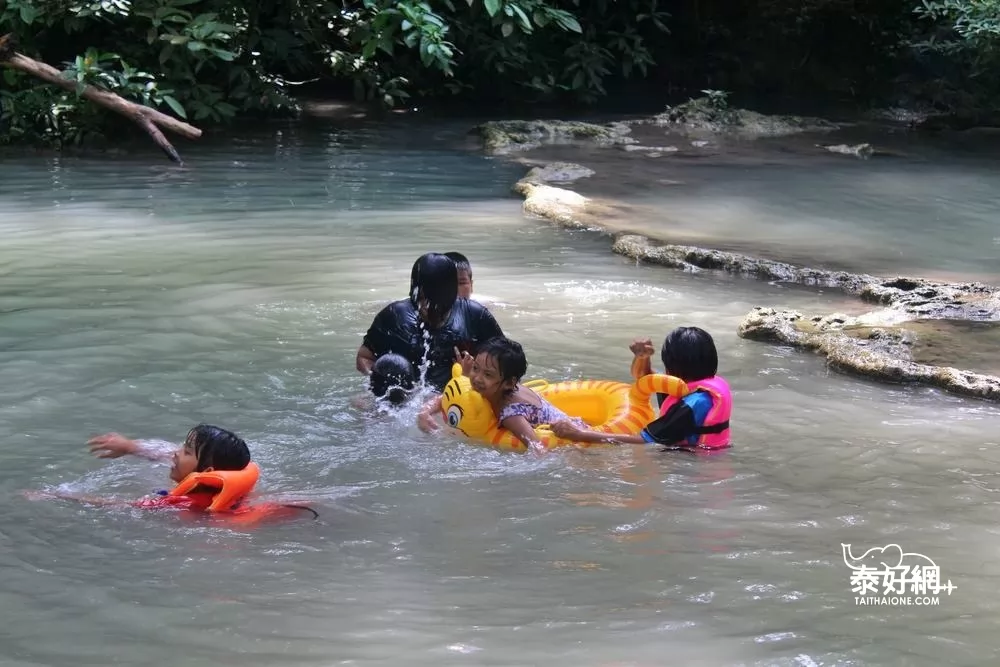 第2層Wung Macha(วังมัจฉา),最有人氣的戲水區,有游泳設備可租借,有很多竹板休息區可以坐下來野餐。