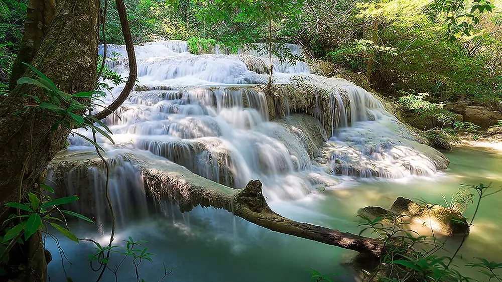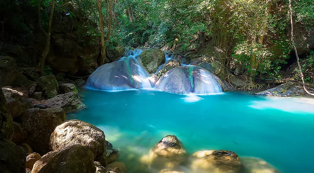 印度教中的Erawan是三頭象,這裡的第7層瀑布,雨季出現3個飛洩奔騰小瀑布的奇景,相貌如同3頭白色的大象,因此而得名。