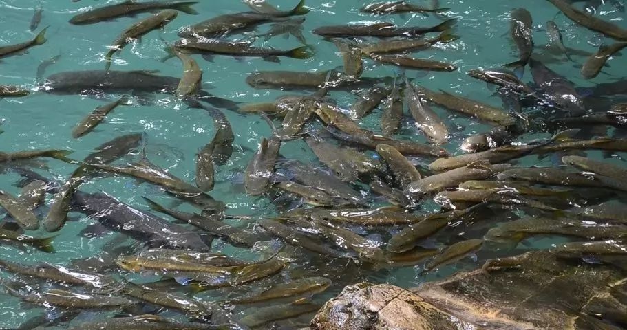 天氣熱,也可以找個地方泡泡腳,這裡自在悠閒的魚,時而還來碰碰人的腳。