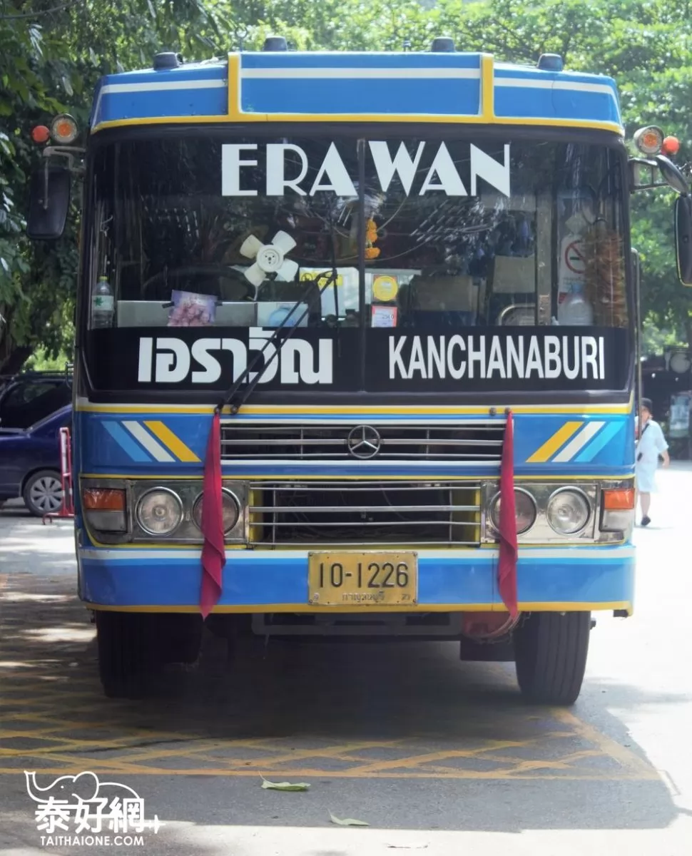 在北碧巴士站可坐巴士前往Erawan,08:00起每小時1班,車程約1.5小時,車費50銖,由Erawan回北碧的末班車是16:00。如果人多可包車前往。