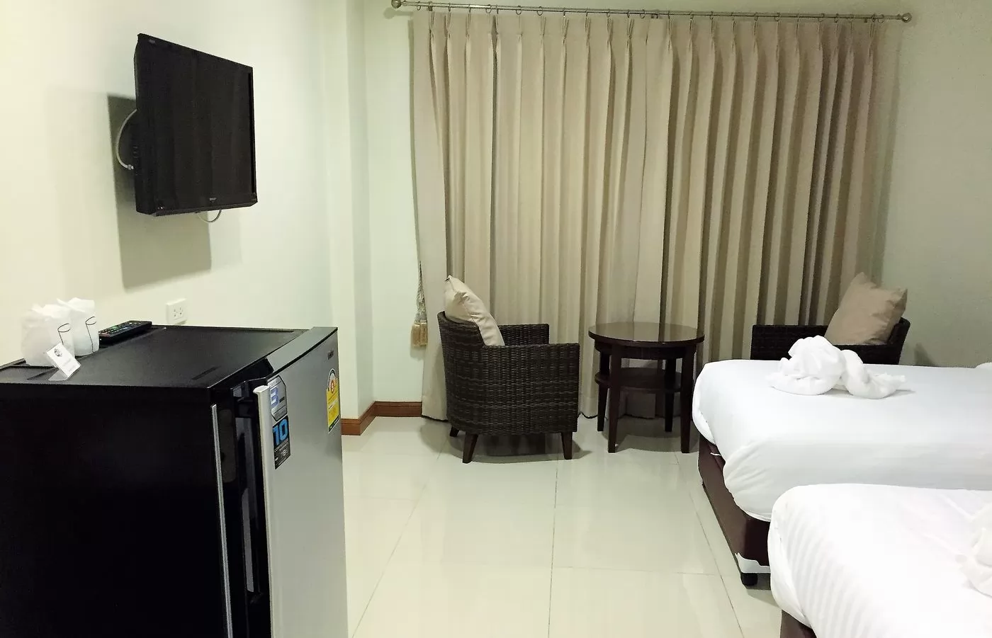 客房寬敞明亮,分為一般標準(兩單、雙人床)、日本木板式(兩人及3人)兩種,價格從1500銖到2300銖不等。客房皆提供免費無線上網、電冰箱和電視。
