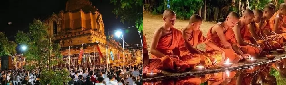 僧侶們將進行整夜的誦經祈願,用長長的白棉線傳達祝福給信眾們,繞頭白棉線在儀式結束後換作手繩,在新年的初始為信眾帶來好運,願一切平安順遂。