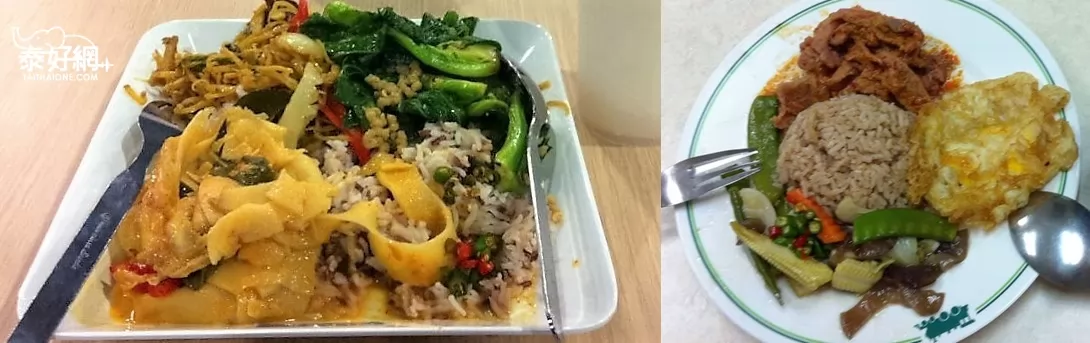 飯菜的價格是以你叫的菜色和種類而定,像是1肉1菜1雞蛋,一般很少會超過50銖,如果是2菜價錢40銖左右,夠便宜吧!
