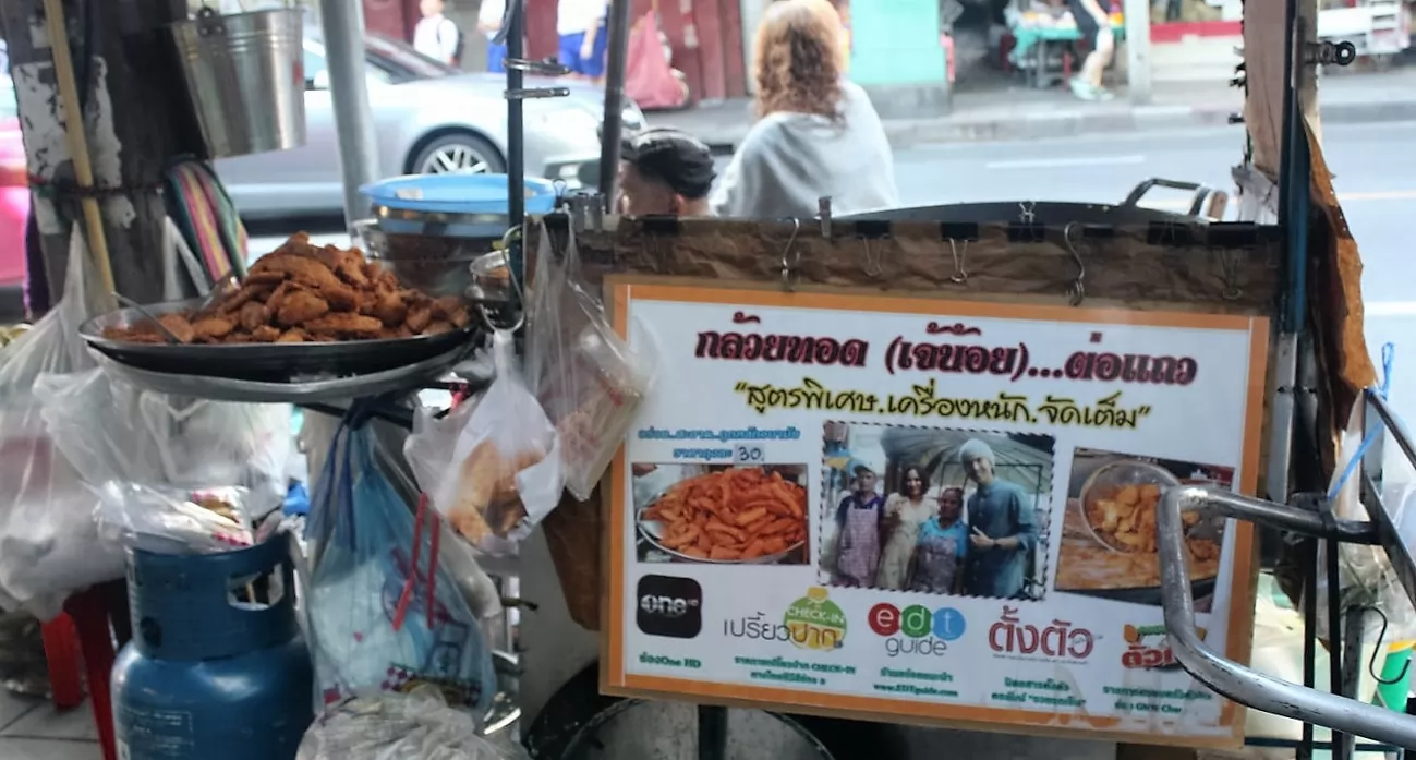 一口油鍋、一個攤點,遍佈在泰國大街小巷裡。香蕉去皮後,切成片,裹上酥粉,油鍋一下,沸騰中冒起幾許青煙,不一會兒,香蕉變得金黃就可出鍋了!