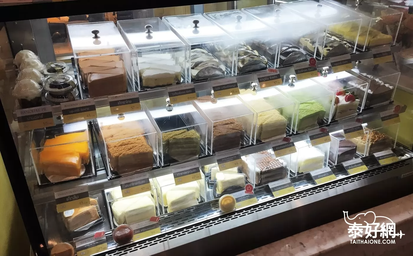 蛋糕選擇約10幾種,還有好吃的布丁,一份起司蛋糕約55泰珠。值得妖妹推薦的有「綠茶千層蛋糕」,還有「泰國奶茶」及「芒果」口味的!