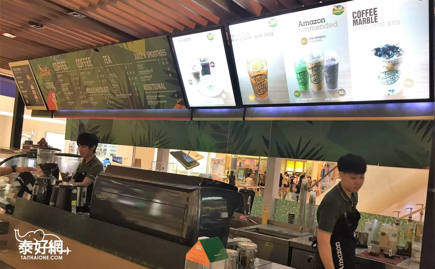 cafe Amazon風格和Starbucks很像,不過價格卻便宜很多,連國、高中生都可以前來消費,因此,廣受大眾的喜愛,新分店擴展到路邊、商場及百貨,但是價位上,加油站會比百貨便宜一些(35-70銖與45-85銖)。
