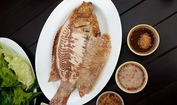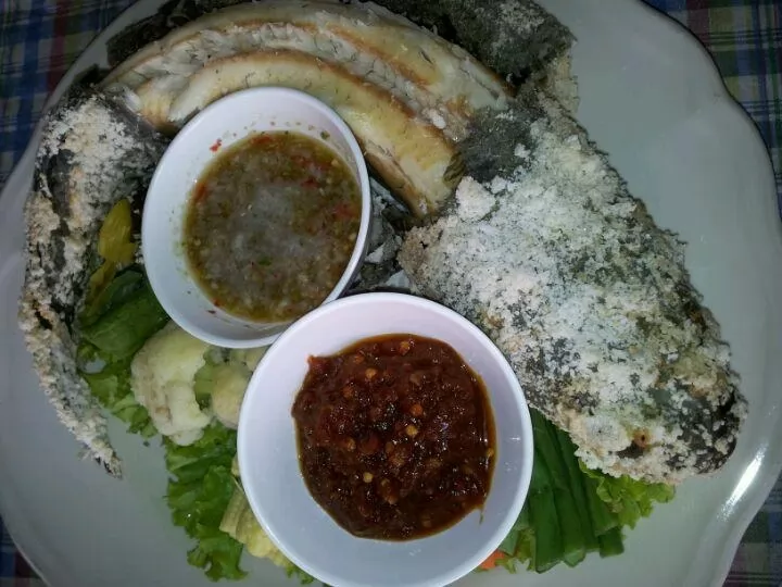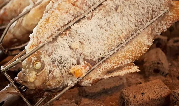 鹽烤魚是泰國的原生態做法,將新鮮(海)魚清理乾淨後,滿滿的塗上大粒海鹽,放在木炭上反復燒烤。