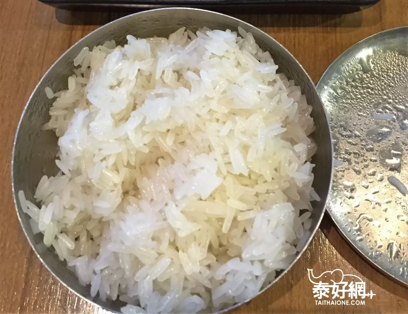 用銀碗裝的糯米飯,很泰式。可以試試一口炸雞、一口糯米的豪邁滋味!