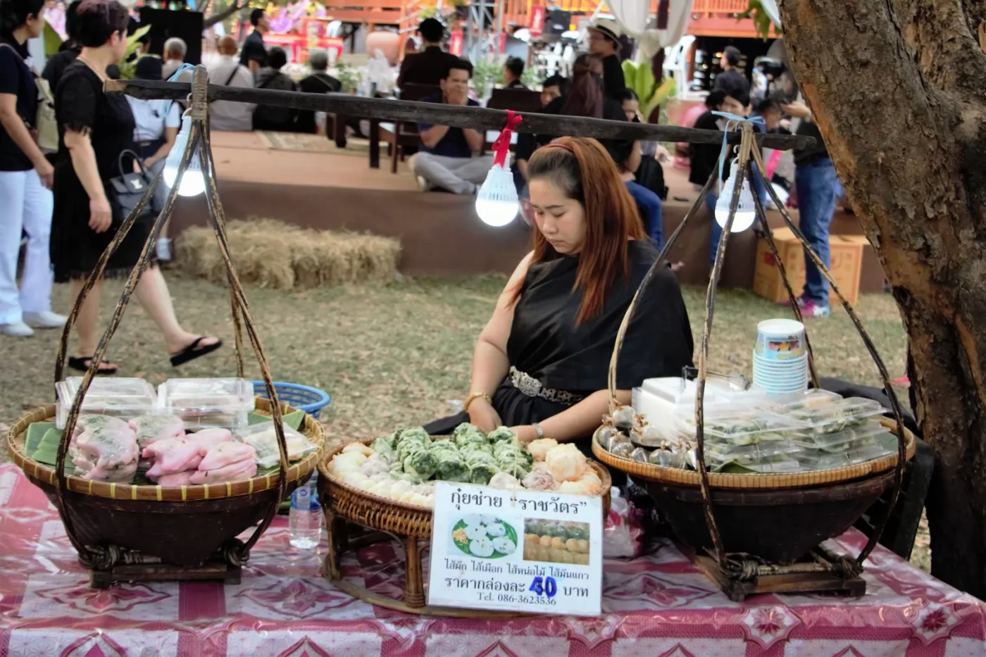 有的人比較喜歡吃圓形清煎的韭菜粿,煎的吃多了會膩,如果沒吃過這道點心,可以嚐嗜,一般以數量來計價,小盒和大盒從20到50銖不等。