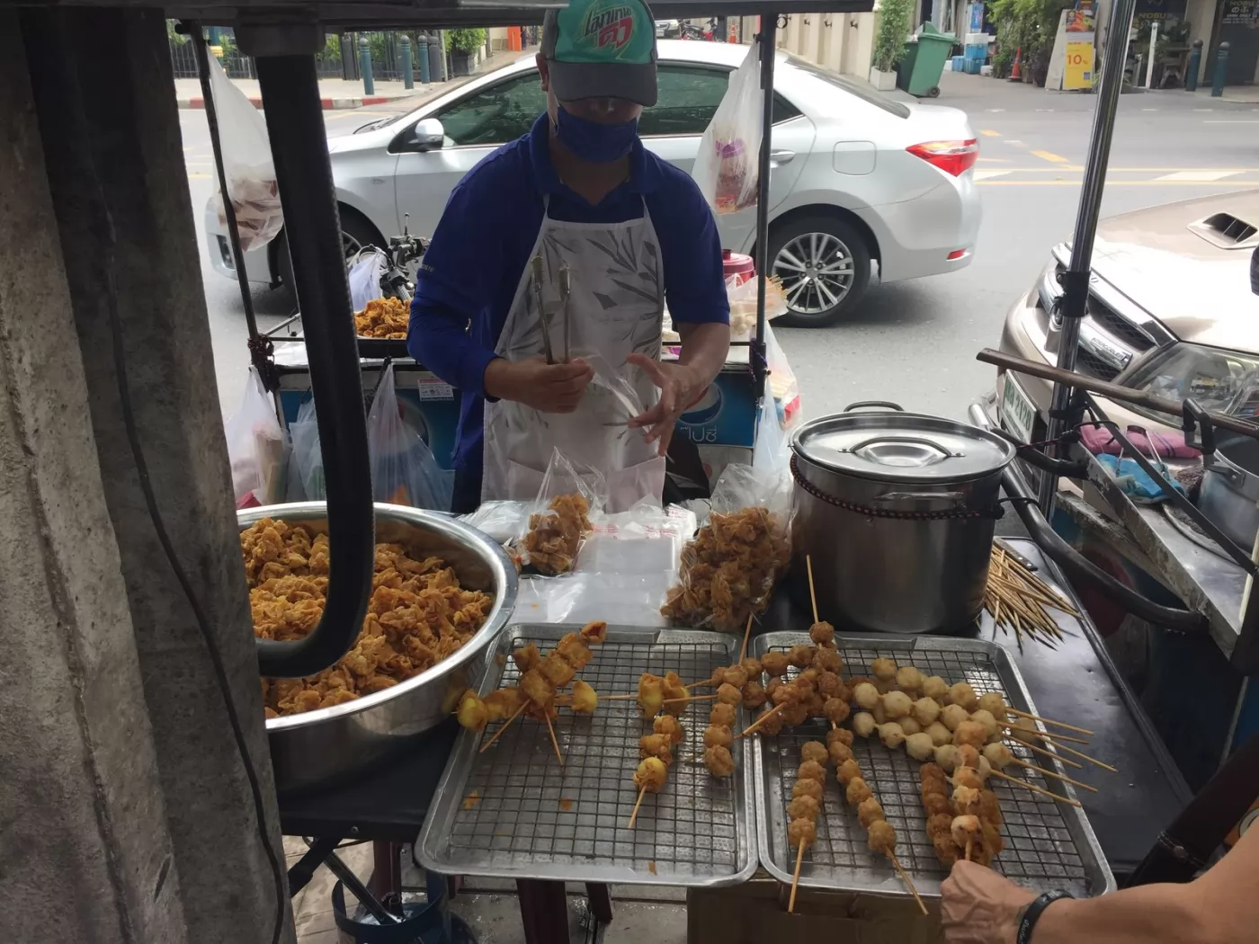 泰國的油炸食物很多,連餃子也可以炸來吃,走過曼谷街上不難發現油炸餃子(เกี๊ยวทอด)攤位,一堆炸得金黃的餃子,誘人食慾!