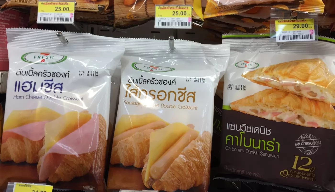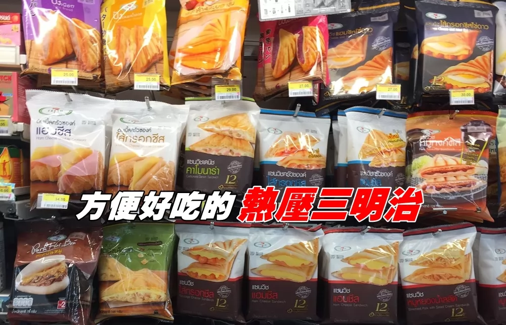 熱壓(加熱)三明治,每家7-11販售的口味各有不同,但種類都多到讓你不知如何選,像是熱狗起司、火腿起司、TUNA、抹茶、荷包蛋等,甜、鹹都有,不怕沒有你喜歡的!價位也夠便宜,從 25到37銖(依照口味不同)。