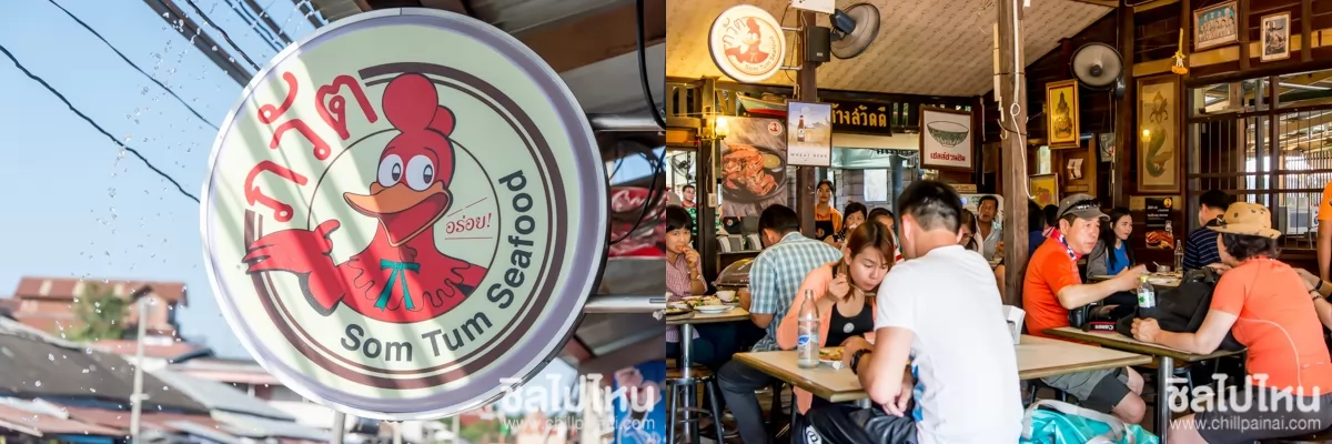 安帕瓦水上市場,必吃的海鮮!除了河岸船家的餐廳,泰國旅遊網站chillpainai推薦有紅公雞海鮮餐廳(Som Tum Seafood)。