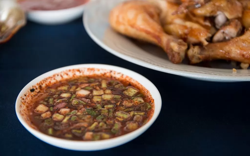 又香又酥脆的烤雞,滋味無窮,再配上酸辣或甜辣的醬汁,更是非常開胃,價錢一隻只是150銖、半隻80銖。