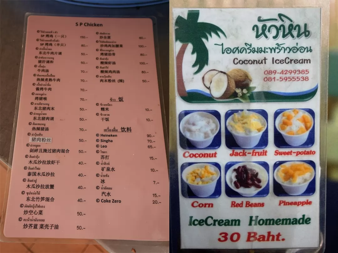 另外有飲料和椰子冰淇淋(30銖)。