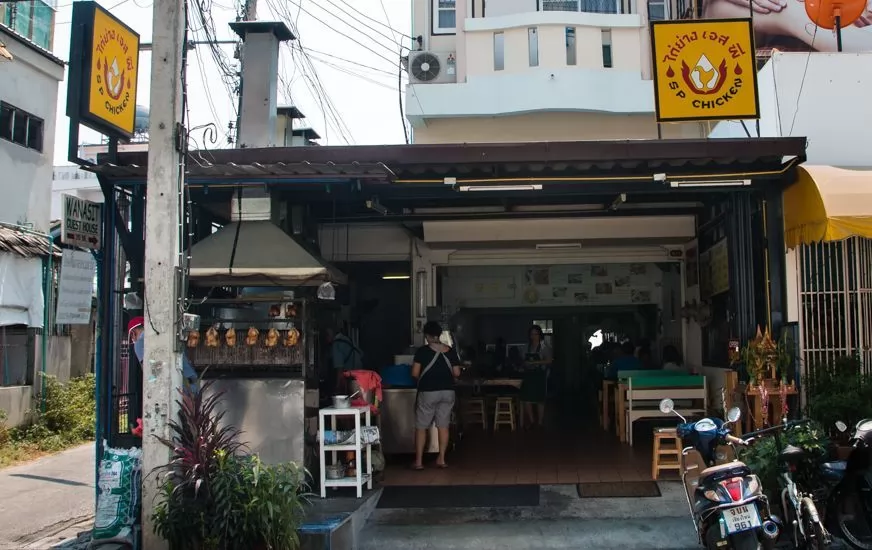 SP Chicken (ไก่ย่างเอสพี),帕辛寺(Wat Phra Singh)旁,專賣烤雞的東北餐廳,已經開業30多年,在清邁十分出名。不少日本、台灣、香港遊客都大為讚賞!