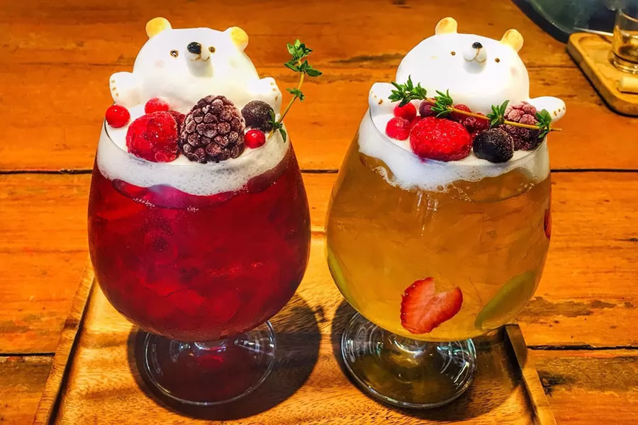 店裡一樓是點餐櫃台,樓梯的結構也打點得很好,二樓外圍有L型的長沙發,上面擺放著多隻可愛的熊熊布偶,玻璃吊燈懸掛在天花板上,別有情調。