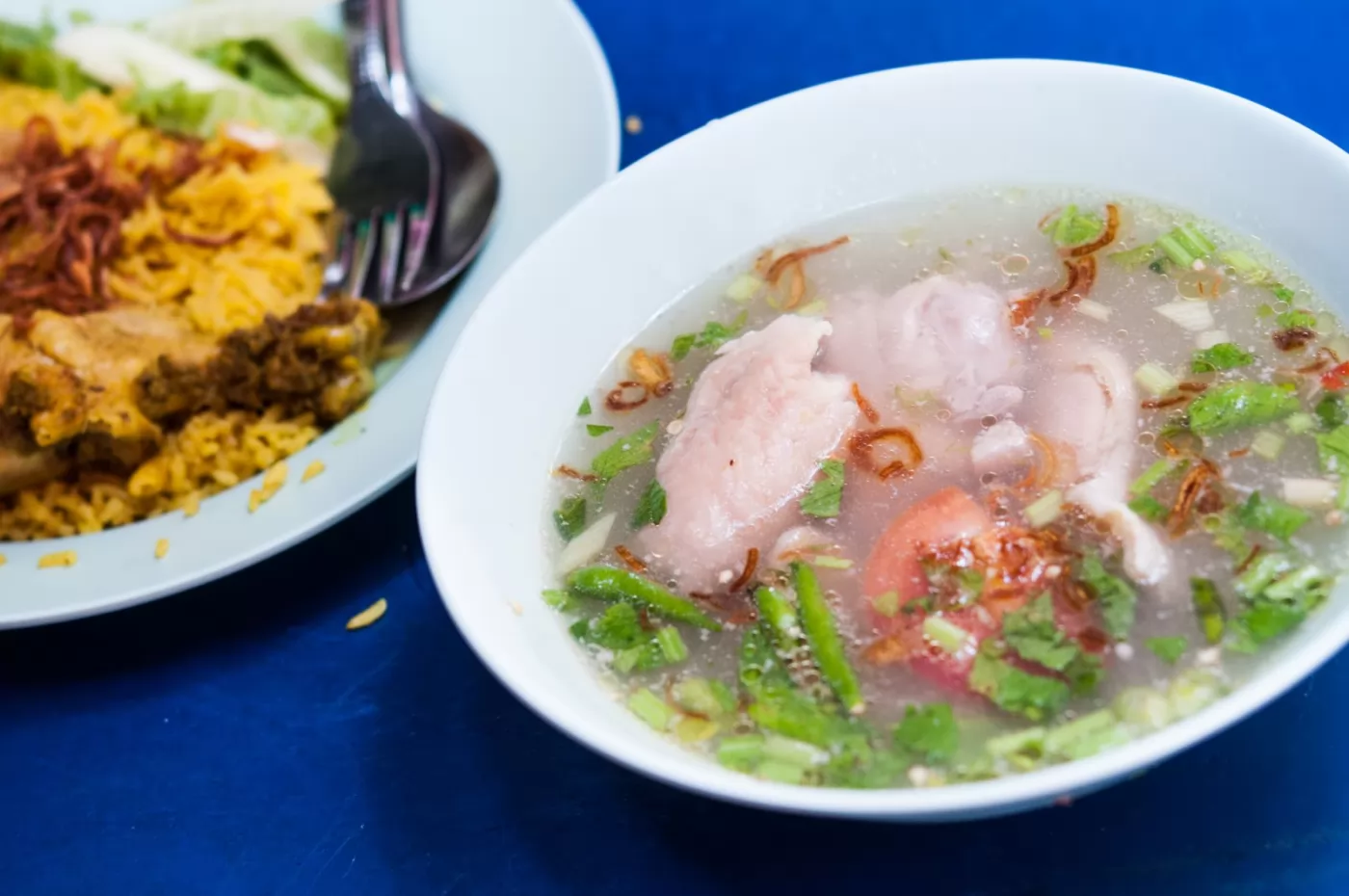 吃這裡的KhaoMokGai,最好配一碗酸辣雞湯(30銖)。