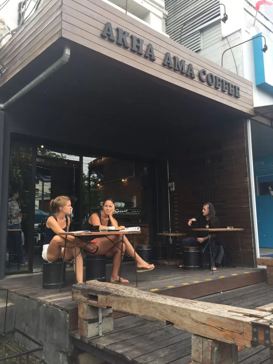 店前,高起的樓板,吸弔很多老外坐在露天座位,品味Akha Ama咖啡。