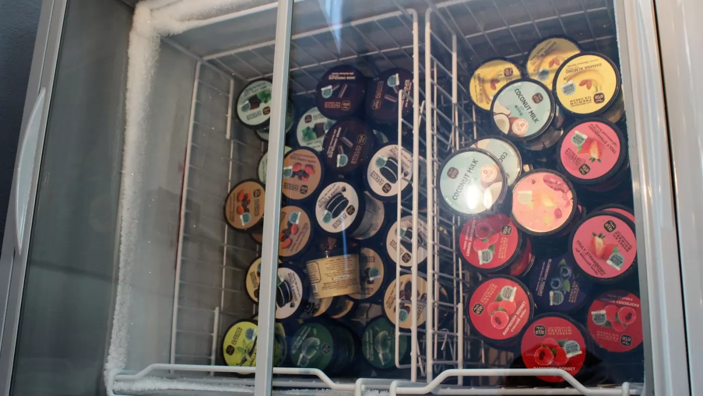 各種口味的冰淇淋(右)以及餅乾夾冰淇淋(左)。