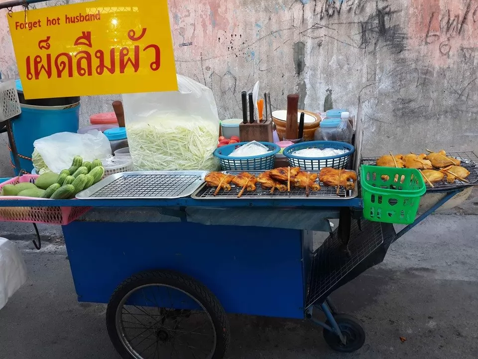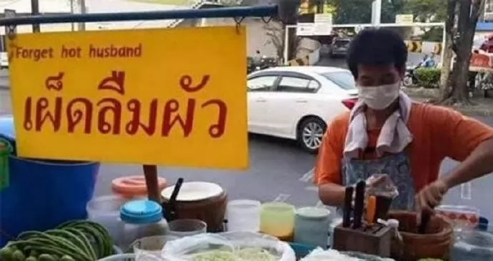 泰國1名大叔為了吸引「吃客」的注意,給自己的宋丹(涼拌青木瓜)攤起了一個讓人「印象深刻」的名字「เผ็ดลืมผัว辣到忘記老公(Forget hot husband)」。這家店在曼谷的ซอยอิสรภาพ 15的巷子裡。